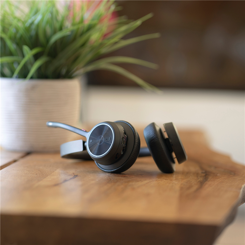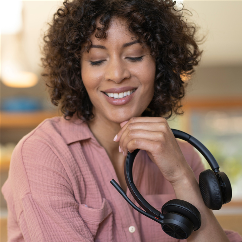 Das ergonomische Design des Poly Voyager 4320 sorgt dafür, dass Sie das Headset auch über lange Zeiträume hinweg komfortabel tragen können. Die gepolsterten Kunstleder-Ohrpolster und das leichtgewichtige Design reduzieren Druck und Belastung, sodass es ideal für ganztägige Nutzung geeignet ist. Der verstellbare Kopfbügel bietet zusätzlichen Komfort und ermöglicht eine individuelle Anpassung für jede Kopfgröße.