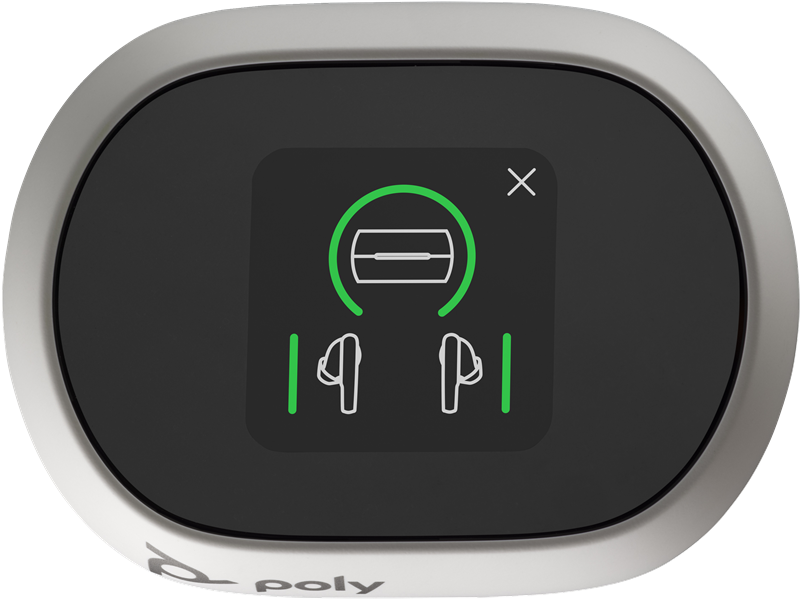 Eine besondere Innovation der Voyager Free 60+ UC ist das intuitive Touch-Display am Ladeetui. Damit können Sie unkompliziert Anrufe annehmen, die Lautstärke regeln oder sogar die ANC-Einstellungen anpassen. Diese Funktion macht die Steuerung der Kopfhörer besonders einfach, ohne dass Sie Ihr Smartphone in die Hand nehmen müssen.
