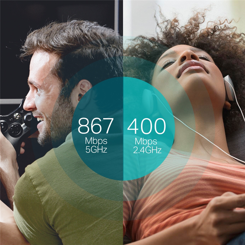 Mit Geschwindigkeiten von bis zu 400 Mbit/s im 2,4-GHz-Band und 867 Mbit/s im 5-GHz-Band bietet der Archer T4U eine kombinierte Gesamtgeschwindigkeit von 1300 Mbit/s. Damit ist er ideal, um große Dateien zu übertragen, HD-Videos zu streamen oder ohne Verzögerungen zu spielen – ganz egal, wie viele Geräte im Netzwerk aktiv sind.